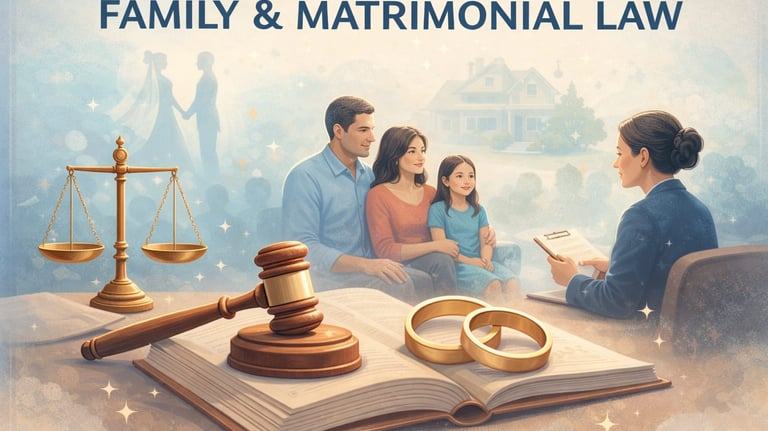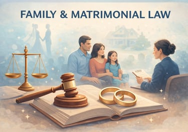D & G Legal provides legal assistance in matrimonial and family disputes with due regard to sensitivity, confidentiality, and the personal nature of such matters. The firm handles proceedings relating to divorce, judicial separation, maintenance, custody, and other allied matrimonial issues. Each matter is approached with care, legal clarity, and a focus on fair and lawful resolution, whether through litigation or amicable settlement where appropriate.